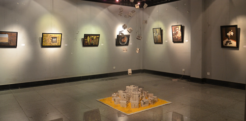 3月24日上午, 2011级美术学师范4班学生的综合材料绘画作品展在美院无形画廊开幕。