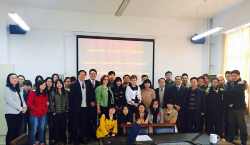 安德烈•诺兰一行还专程赴我校奉贤校区,看望了建筑工程学院2011级中英土木工程专业的30名学生,这些学生即将于9月份赴爱丁堡龙比亚大学学习。安德烈•诺兰与学生们就大家关心的问题进行了交流,并热情欢迎各位同学前往爱丁堡龙比亚大学生活和学习。
