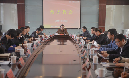 校党委书记陆建非通报了近期干部调整的情况,并对党的群众路线教育实践活动“回头看”工作、干部教育培训、学校各项重点工作、校庆筹备、校园稳定和意识形态工作等作出部署。