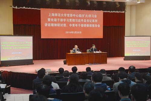 报告会由校长张民选主持,校领导王莲华、杨卫武、秦莉萍、葛卫华、丛玉豪、高建华、柯勤飞,校长助理张峥嵘出席。校党委中心组其他成员,校处级干部学习贯彻习近平总书记系列讲话精神研讨班和中青年干部研修班的学员等300余人参加了学习会。