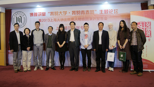 4月9日下午,由上海市教育卫生工作党委、上海市教育委员会主办,上海教育报刊总社和上海师范大学承办的博雅讲堂“我的大学•我的青春梦”主题论坛暨2013上海大学生年度人物巡回演讲报告会在我校奉贤校区图文信息楼九楼报告厅举行。上海教育报刊总社副社长施清平、东方教育时报总编辑徐建华、校党委副书记葛卫华、学生工作部(处)长负责人等出席,以及120余名师生代表参加了本次报告会。