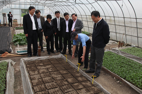 会后,中心理事会理事长、市农委副主任殷欧与中心一行考察了中穗蔬菜基地。