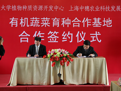 此次植物种质资源开发中心与中穗农业科技发展有限公司的合作,着力将该园区建设作为中心有机蔬菜合作基地、科研育种基地、优质品种创制基地以及社会服务的孵化基地。仪式中,合作双方进行了深入的交流。陆建非代表学校,感谢中穗及相关领导对中心的关心和帮助。他表示,此次的合作使师大为社会服务进入了纵深发展新阶段。希望双方在互动、互助、互利的基础上,将该基地建设成为优质种质产学研基地,更好地服务社会。