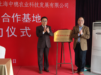 4月11日上午,我校“植物种质资源开发中心”与上海中穗农业科技发展有限公司举行“蔬菜育种合作基地”揭牌仪式,校党委书记陆建非、副校长刘晓敏,率领校办公室、党委宣传部和中心主要负责人一行出席。青浦区副区长赵明、青浦区农委主任吴希铭、青浦现代农业园区董事长丁国平、原上海市农委副书记姜燮富、中穗农业科技发展有限公司董事长俞斌参加仪式。