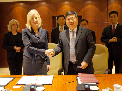 4月10日中午,澳大利亚首都堪培拉行政区首席部长兼市长凯蒂•嘉丽格女士与我校校长张民选就双方教育合作进行会谈,并签署《澳大利亚首都行政区政府与上海师范大学建立教学与学术交流合作备忘录》。陪同出席会谈并见证协议签署的我方代表有副校长丛玉豪、附属中学和国际交流处负责人,澳方代表有首都行政区公共事业部主任兼部长办公室主任凯茜•雷格、部长媒体顾问帕特里克•克罗南、堪培拉大学校长斯蒂芬•帕克教授等。这是我校首次与国外地区政府间签署教育合作备忘录。