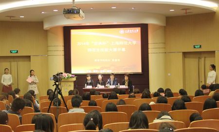 4月23日,2014年“世承杯”师范生技能大赛开幕式在奉贤校区图文二楼举行。本次大赛由学生工作部(处)主办,教育学院、数理学院、美术学院承办。来自11个师范学院的师范生代表出席了本次开幕式。开幕式上,学工部部长张文潮、教育学院院长夏惠贤寄语全体师范生坚定职业理想,传承“世承”精神,学以致用、知行合一,以师范生技能大赛为契机展示90后未来教师的风采,增强作为师范生的光荣感和使命感。主办单位之一教育学院学生工作副书记谢青介绍了此次师范生技能大赛的活动方案,并对大赛提出了总体要求。
