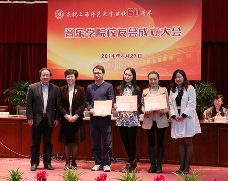 会上,上师大教育发展基金会“音乐教育基金”还向在2013年取得优异成绩的三位学生颁发了奖金。音乐教育基金是在学院离退休老教师朱葆菁教授和校友吴毅、朱劲松等的积极倡议和推动下建立的,旨在表彰音乐学院在学术科研、教育教学、艺术实践等方面取得突出成绩的师生。