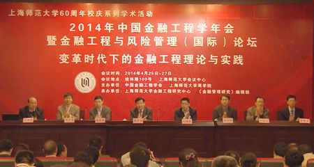 4月26日,由中国金融工程学年会、上海师范大学商学院主办,上海师范大学金融工程研究中心、《金融管理研究》编辑部承办的“2014年中国金融工程学年会暨金融工程与风险管理(国际)论坛”在春雨霏霏的学思湖畔举行。此次也是上海师范大学60周年校庆系列学术活动之一。