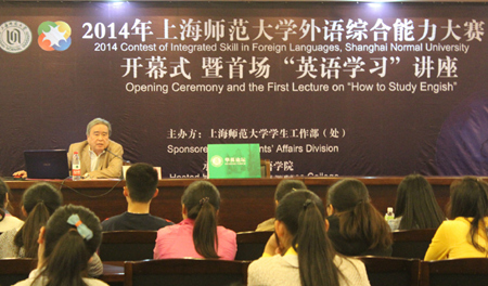 简短的开幕式后,原外国语学院院长顾大僖教授用英语作了”How to study English”的讲座。他结合自己丰富的教学经验,从自身经历讲起,向学生们传授了英语学习的方法和技巧,鼓励大家学好英语。讲座后,学生纷纷用英语提问,风趣的谈吐使讲座现场欢声笑语不断,更使学生们受益匪浅。