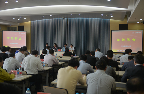 5月16日,校党委召开党务例会,通报近期工作,部署下阶段工作重点,校领导杨卫武、秦莉萍、葛卫华,各二级单位党组织书记、党务部门负责人出席。校党委书记陆建非主持会议,并对学习“五四”讲话精神、校园安全稳定、就业创业工作、干部管理和年轻干部培养、校庆筹备等工作做出部署。