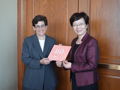 访问中,代表团还参加了与我校在洛杉矶举行的上海师范大学美国加州校友座谈会,并和校友们交流互动。柯勤飞向老校友介绍了近年来学校的发展情况,并邀请校友们常回家看看,同时也欢迎在海外打拼多年的校友推荐优秀人才到母校任教;她也鼓励正在海外交流的青年学生珍惜学习的机会,感受美国文化、拓宽国际视野、提升专业素养。校友们欢聚一堂,分别介绍了自己的海外经历,在分享工作学习和生活经验的同时,也纷纷为加强加州校友联络、支持母校海外校友工作出谋划策。最后全体参与座谈的校友为师大60周年校庆送上了祝福。