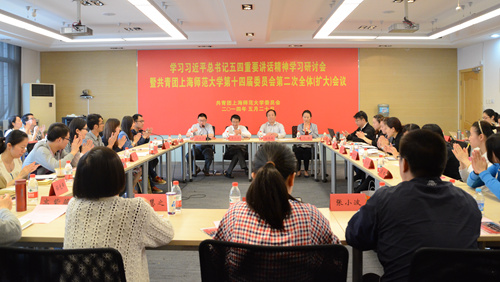 连日以来,习近平总书记5月4日在北京大学考察时的重要讲话,在我校师生中引起强烈反响。为引导广大团员青年深入学习领会习近平总书记重要讲话的丰富内涵和精神实质,树立和践行社会主义核心价值观的时代责任,牢固把握“勤学、修德、明辨、笃实”的努力方向,学校精心组织、多措并举、全面推进,在全校团员青年中迅速掀起学习贯彻习近平总书记重要讲话精神的热潮。5月20日,学习习近平总书记五四重要讲话精神研讨会在徐汇校区香樟苑召开。来自我校各学院的团员青年代表、学院团委书记、研究生支教团代表等共聚一堂,畅谈学习习近平总书记讲话的学习体会。校党委副书记葛卫华出席并做重要讲话。