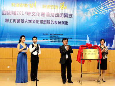 5月22日下午,“上海师范大学文化志愿服务基地”揭牌仪式在奉贤区四团镇社区文化活动中心剧场举行,我校副校长高建华出席揭牌仪式并讲话。学校办公室、奉贤校区两委会、保卫处、教务处、后勤实业中心以及音乐学院师生参加了此次活动。
