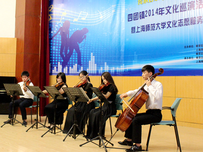 揭牌仪式后举行的“上海师范大学文化志愿服务专场演出”中,音乐学院学子们的表演精彩纷呈,整个剧场座无虚席,掌声不断,气氛热烈。