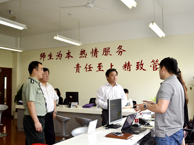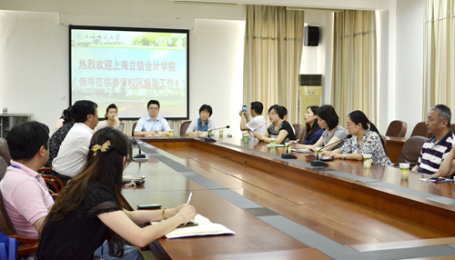 立信会计代表团一行实地参观了我校设在大学生活动中心一楼的学生事务中心接待室。参观结束后,两校教师就远郊办学过程中存在的问题以及学生事务中心实际运行过程中的存在的情况相互交流座谈。