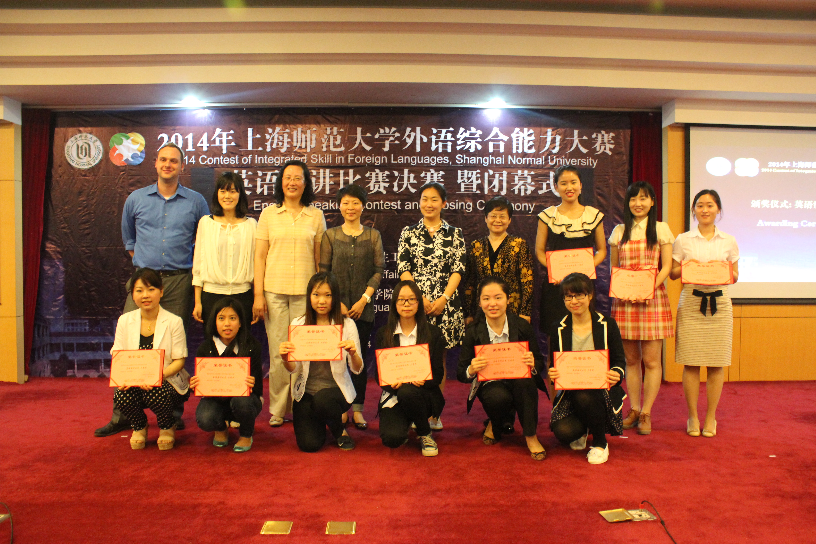 6月5日晚,上海师范大学英语演讲比赛决赛暨2014外语综合能力大赛闭幕式在奉贤校区图文中心九楼举行。校学工部、相关学院负责人及师生代表近200人出席。