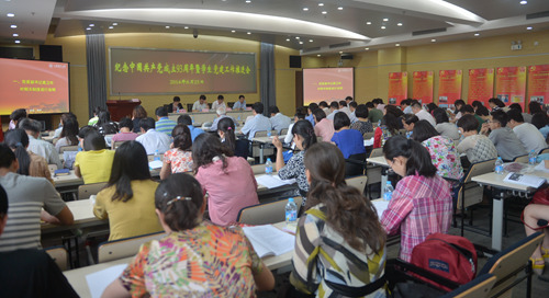 为贯彻落实中央《关于加强基层服务型党组织建设的意见》、《中国共产党发展党员工作细则》等文件精神,庆祝建党93周年,6月25日下午,校党委在会议中心二号报告厅召开庆祝中国共产党成立93周年暨学生党建工作推进会。校党委书记陆建非,党委副书记、上海旅游高等专科学校党委书记杨卫武,党委副书记、纪委书记秦莉萍,党委副书记葛卫华,二级单位党组织书记,党务部门正职,学院党组织副书记、组织员,学生党支部书记和党员代表共计90余人出席会议。会议由秦莉萍主持。