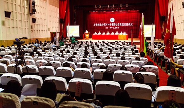 7月4日上午,上海师范大学2014年暑期社会实践出征仪式在徐汇校区东部礼堂举行。校党委书记陆建非,校党委副书记葛卫华,上海韩哲一教育扶贫基金会副理事长、秘书长韩烽火,以及组织部、宣传部、研工部、学工部、团委负责人出席出征仪式。各学院分管学生工作副书记、分团委书记、指导教师代表以及学生代表参加。