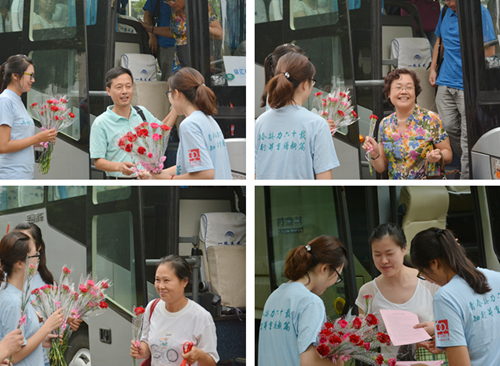 “老师,教师节快乐!”清晨和午后,在教师班车站点远远就能听到同学们的祝福,每一位下车的老师都会从校学联学生干部手中,接过了一朵朵可爱的康乃馨,一句句温馨的祝福伴随老师们走进课堂。