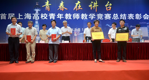 总结表彰会上,在首届上海高校青年教师教学竞赛活动中获得各项殊荣的个人和集体受到了市总工会、市教卫工作党委和市教委的表彰。全市15位青年教师获一等奖,30位青年教师获二等奖,59位青年教师获三等奖,13位青年教师获优胜奖。其中,我校人文学院张华获人文社会科学组一等奖,数理学院涂泓获自然科学基础学科组二等奖,建工学院杨凌志获自然科学应用学科组二等奖。同时,我校因竞赛组织和承办工作成绩突出,获得“特别贡献奖”和“优秀组织奖”;副校长丛玉豪因其指导的选手获得全国教学竞赛一等奖,本人荣获“最佳指导奖”。