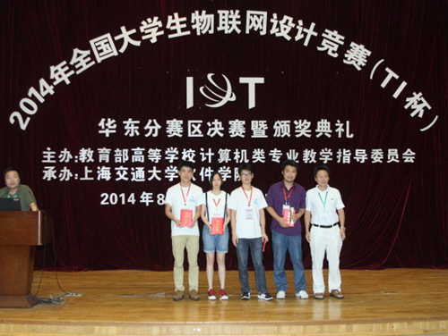 近日,由上海交通大学软件学院承办的“全国大学生物联网设计竞赛(TI)杯”华东分赛区竞赛圆满落幕。我校参赛队“来自新星的我们”在信息与机电学院李鲁群教授的指导下,其作品“基于车联网技术的应急交通指挥方案”经过作品答辩、硬件电路演示、软件算法演示博得了专家的好评,最终在华东赛区荣获一等奖。该队成员分别为:华中伟(信息机电学院)、姜备(信息机电学院)、蒋真(数理学院)、韩贤政(信息机电学院)。