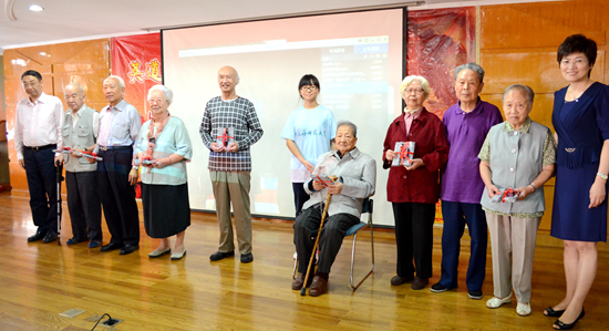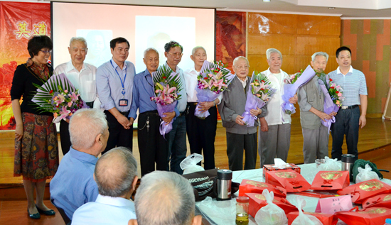 抗日战争时期参加革命的几位老同志被请上台,学院书记、部处领导为他们献上鲜花,表达对抗战老同志的崇高敬意。老同志们激动地追忆起往昔的峥嵘岁月,92岁高龄的老战士韩祥林还哼唱起当时脍炙人口的抗战歌曲。嘹亮的歌声令在场的同志们肃然起敬。老同志们寄语年轻一代,要牢记历史,勿忘国耻,发扬抗战精神,将祖国建设的更加美好强盛。