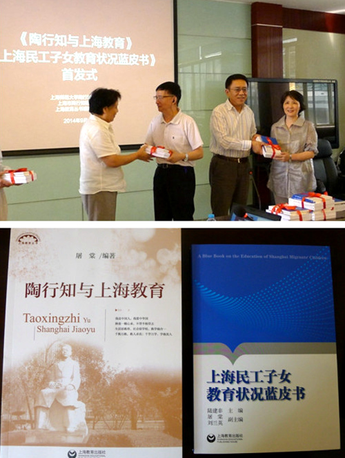 9月26日下午,由上海师范大学陶行知研究中心、上海市陶行知研究协会、上海教育丛书编辑委员会共同主办的“《陶行知与上海教育》、《上海民工子女教育状况蓝皮书》首发式”在外宾楼召开。