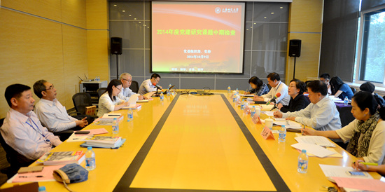 10月9日下午,校2014年度党建研究课题中期检查会在会议中心5号会议室举行,市教卫党委系统党建研究会高校专业委员会主任、上海金融学院党委书记郑沈芳,市教卫党委系统党建研究会高校专委会秘书长、市教卫党委党建研究会常务理事、秘书长顾继虎,校党委组织部部长、党校常务副校长盛春及各项课题负责人出席会议。会议由党校专职副校长刘岚主持。