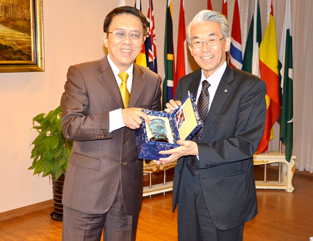 10月10日下午,日本广岛大学副校长佐藤利行、日本福山通运公司总经理小丸成洋一行访问我校,党委书记陆建非接见了客人,并就2014年12月在我校举办华东地区五校大学生日语作文和演讲比赛、两校在高层互访、教师交流、学生交换、共同培养研究生项目等具体事宜进行了亲切、友好的会谈。国际交流处、外国语学院相关负责人出席了会见。