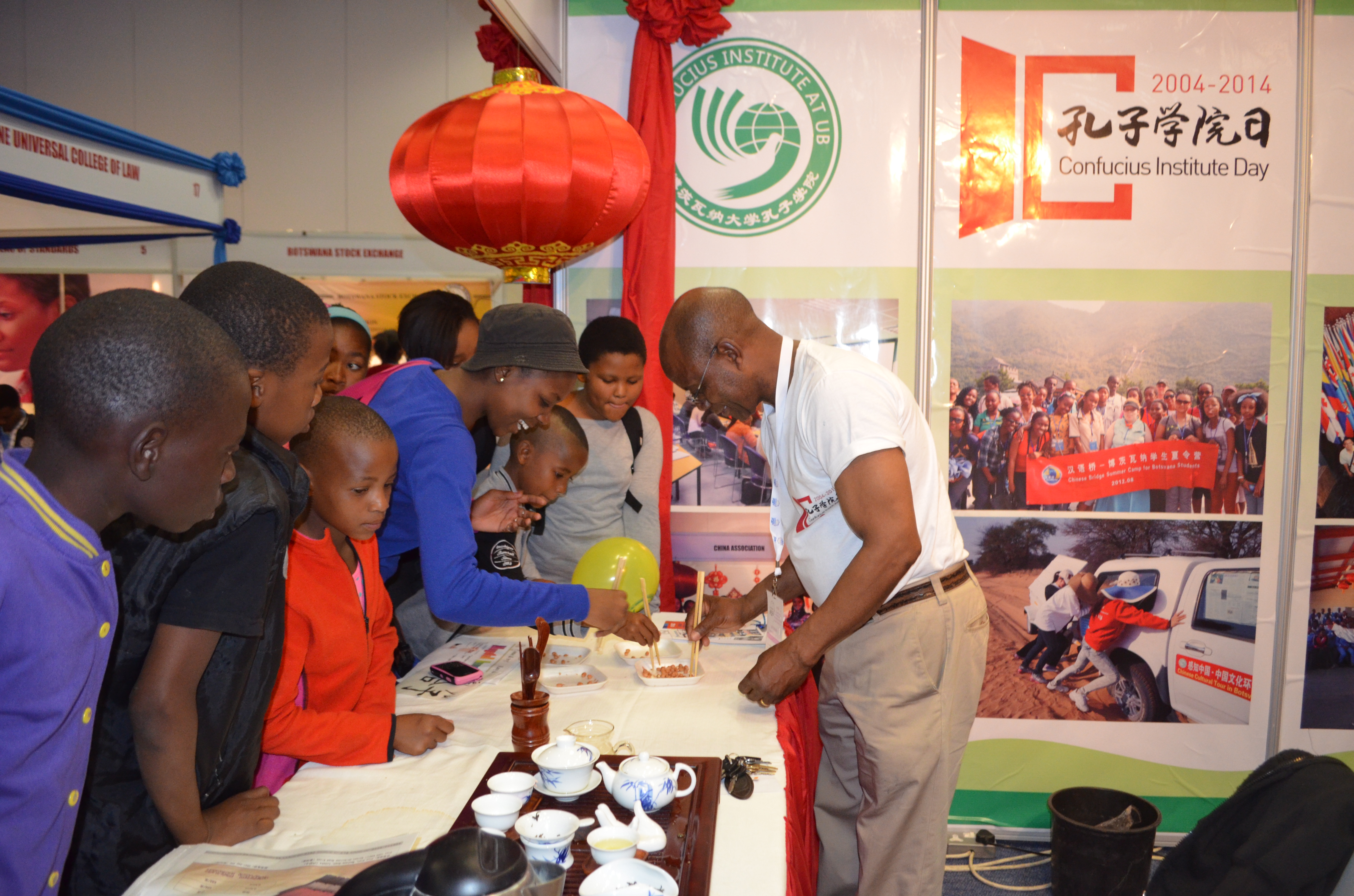 此前,8月25日到31日,孔院参加了博茨瓦纳全国博览会,开展中国文化周活动,通过剪纸、书法、茶艺和民族服装等活动让更多博茨瓦纳人了解中国,派发了一些关于中国方方面面的英文版书籍,在现场通过图片、音乐、视频的形式全方位地宣传了中国的历史发展和深厚的文化底蕴,吸引了众多参观者驻足围观并积极到参与活动互动,剪纸和书法吸引了众多人流,大家对双喜和中国名字表现出浓厚的兴趣,中国驻博茨瓦纳大使馆对本次活动予以大力支持并给予高度评价,大使还到现场看望工作人员。