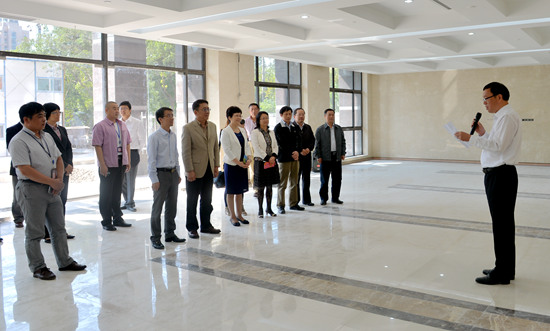 陆建非在现场发表讲话。他指出,项目建设期间,各位校领导对两栋楼宇的建设都很关心、给予高度支持、用心用力。衷心感谢职能部门的团结协作,克服工程建设中的各种困难,以两栋大楼的建成向校庆60周年献上一份厚礼。这些建筑竣工,将极大地改善了学校的办学条件。对这两栋楼宇的分配和使用,陆建非用“集约”、“分享”、“预留”六个字来概括,要求从整体规划上做到学院用房相对集中;公共资源,如图书资料、电子设备等要多个学院共享;更重要的是为学校今后的发展预留一些空间。陆建非最后指出,在工程最后一步的内装修上,要做到典雅、流畅、得体、亲和。