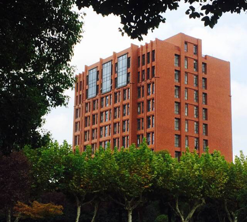 文科实验楼,造型简洁大气,色彩清新自然,深红色的外墙与茶色玻璃竖向条窗交相辉映,显得古朴厚重,室内建筑空间布置宽敞明亮。