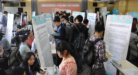 10月15日,由我校和上海市漕河泾新兴技术开发区发展总公司联手举办的“上海师范大学2015届理工类毕业生专场招聘会”在徐汇校区西部会议中心2号报告厅举行。30家来自漕河泾开发区、临港开发区的微创软件、启明软件、希凯电子机械、科华生物、建工四建等知名企业来校招贤,招聘岗位主要涉及计算机、信息、机械、电子等专业,现场提供了近600个岗位,吸引了众多理工类专业学生前来应聘。统计显示,此次参会企业共收到1021份简历,963位同学在现场进行了短暂的面试,最终近500人次达成进一步意向。