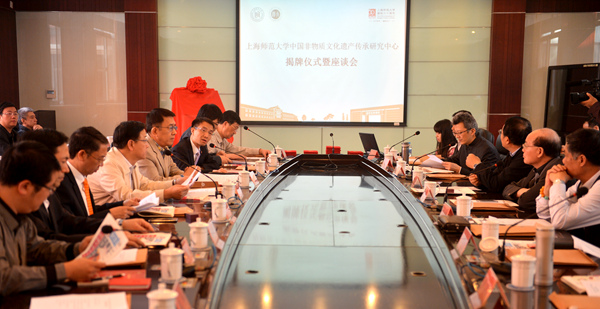 10月16日,我校召开上海师范大学中国非物质文化遗产传承研究中心(以下简称“非遗中心”)成立座谈会。上海市教卫工作党委书记陈克宏出席座谈会并发表讲话。陈克宏书记和我校陆建非书记、朱自强校长共同为非遗中心揭牌。陆建非教授任非遗中心主任,党委副书记葛卫华、谢晋影视艺术学院院长赵炳翔、《当代教育周刊》执行主编王健任副主任。陆建非介绍了该中心成立的背景、意图、宗旨、架构以及主要任务。同时,非遗中心聘任了第一批13位校内外特邀研究员。葛卫华主持了揭牌仪式和座谈会。