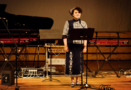 10月26日,我校非物质文化遗产传承研究中心两位特约研究员、音乐学院副教授申林与谢晋影视艺术学院青年教师赵娴(见下图)参加了2014 年第 15 届北京国际电子音乐节闭幕式音乐会,将非物质文化遗产“吴歌”与电子音乐完美结合,给人以全新的听觉感受。