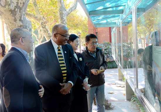 10月24日,以“绽放在密西西比河畔的友谊之花”为题的密苏里大学孔子学院图片展在徐汇校区展出,校党委书记陆建非、密苏里大学副校长Williamson共同为图片展揭幕。