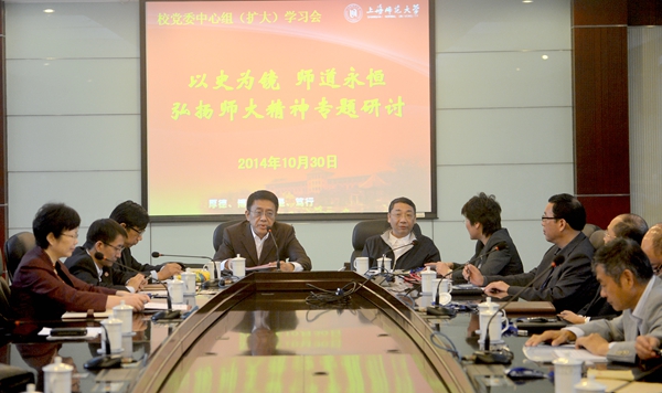 10月30日,我校60周年校庆系列活动落幕不久,校党委中心组举行扩大学习会,围绕“以史为镜 师道永恒——弘扬师大精神”进行专题研讨。会议由校党委书记陆建非主持,校领导朱自强、杨卫武、秦莉萍、葛卫华、高建华、柯勤飞、康年以及校党委中心组其他成员、全校中层党政正职参加。