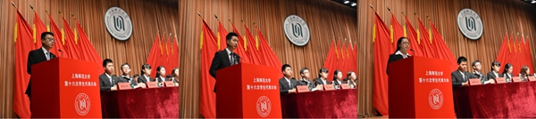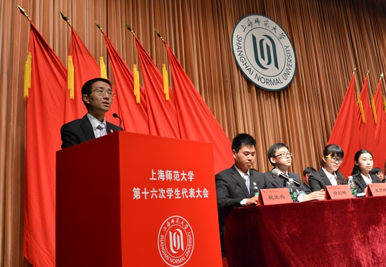 上海交通大学学生联合会主席邵宪一代表兄弟院校向大会致贺辞,上海市学生联合会执行主席李卓航应邀出席并致辞。上海外国语大学、上海财经大学、上海第二工业大学等兄弟院校的学生会也在本次学代会召开之际向大会发来贺信。上海师范大学学生联合会主席陈冬尔代表第十五届学生委员会作了题为《坚定理想信念,奉献青春力量,为实现中国梦砥砺前行》的工作报告。