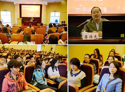 蒋传光教授以十八届四中全会依法治国为主线,围绕依法治国的意义、总体目标和亟需破解的难题,结合当前环境污染、食品安全、房屋拆迁、官员腐败等社会热点问题,深入浅出地剖析了十八届四中全会在理论与实践方面“新的突破”。他指出,全会明确强调了宪法的核心地位,明确提出了要科学立法,要保证法律的有效实施。同时,全会强调要通过加强司法功能建设、增强司法公正提高司法的公信力,从而化解社会的矛盾;要强化法治理念的培养,加强公民的普法教育,更要对领导干部加强法治理念教育;要依法执政,处理好党的领导、人民当家作主和依法治国的有机统一。精辟的观点,生动的讲解嬴得了在场师生的阵阵掌声。