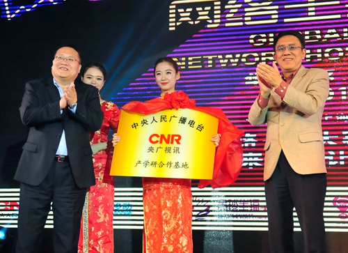 11月8日下午,在由谢晋影视艺术学院作为承办方之一的第二届全球华语网络主播大赛决赛现场,我校与中央人民广播电台视讯传媒股份有限公司正式签署产学研合作基地,校党委书记陆建非和央广传媒发展总公司总经理王跃进代表双方在教苑楼多功能厅的现场进行了揭牌,在场的来宾和同学见证了这一时刻。