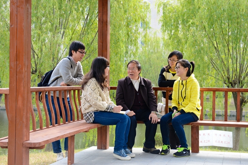 月亮湖畔的阳光亭既丰富了校园文化景观,又为学生们的课余时间提供了一个休闲的场所。在阳光亭中感受到的不仅是师大和煦的风,温暖的阳光,文化的氛围,更有杨德广校长对于学生们的一份温暖的牵挂与关心。