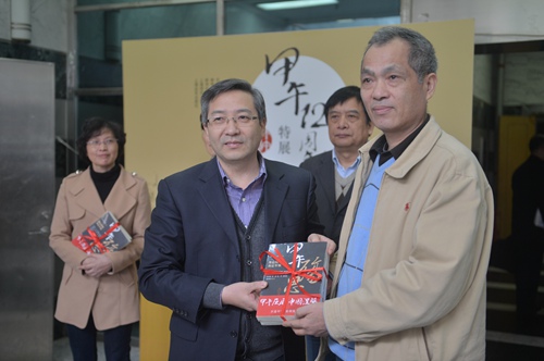 郁志荣讲述了甲午战争失败的原因,警示青年学子一定要奋发努力、勿忘国耻。徐忠良代表主办方对展览的缘起、筹备、巡展计划等作了说明。上海远东出版社还向我校赠送了汇编出版的《甲午殇思》和《甲午镜鉴》纪念丛书。