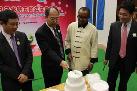 11月14日,由我校和博茨瓦纳大学合办的博茨瓦纳大学孔子学院举办了成立五周年庆典。中国驻博大使郑竹强,中博友协执行主席南庚戌,博茨瓦纳华人商会会长刘冰,中国援博医疗队队长郑首年,博茨瓦纳大学校长法科、副校长托托洛、前校长博究思、前副校长杨曼、人文学院院长切巴尼、孔子学院首任外方院长罗柏,以及当地侨领与孔子学院一百多名学生参加了庆典。我校代表团出席了庆典相关的系列活动。