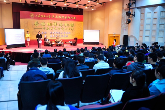 11月20日下午,学术前沿系列沙龙之“唇齿相依亦相磕——中朝关系演变七十年”在教苑楼多功能厅举行。华东师范大学国际冷战史中心主任、历史系终身教授、著名历史学家沈志华教授,美国康奈尔大学中美关系史研究讲座教授、中国与亚太研究项目主任、华东师范大学“紫江学者计划” 讲座教授、著名国际关系学家、历史学家陈兼教授应邀来我校,就七十年的中朝关系演变问题展开了一场生动的学术交流与对话。论坛开始前,校长朱自强教授亲切会见了两位专家学者。近三百名师生参加了此次沙龙。