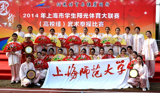 11月22日,在上海市学生阳光体育大联赛(高校组)武术拳操比赛中,由人文学院、教育学院、生环学院、马克思主义学院等学院女生组成的我校功夫扇队、养生功法队,获得武术知识竞赛一等奖、功夫扇一等奖、养生功法易筋经第一名的佳绩。功夫扇队在这项比赛中已是五度蝉联一等奖。