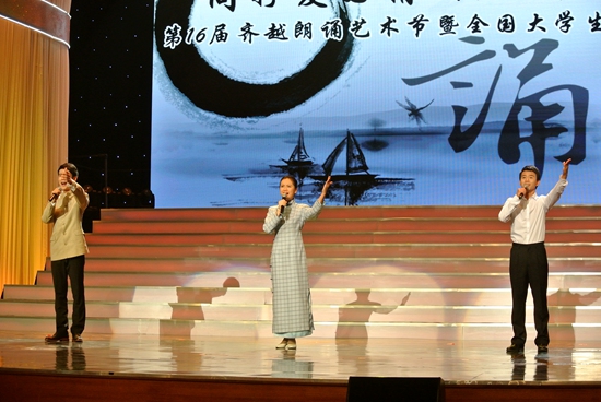 11月28日,以“同抒爱国情、共传华夏声”为主题的“第16届齐越朗诵艺术节暨全国大学生朗诵大会”在京圆满落幕。我校在此次比赛中获得“最佳组织奖”。同时,我校谢晋影视艺术学院由播音与主持艺术专业教师韩晓晔、刘阳共同指导,2013级播音与主持艺术专业学生葛璇、马鑫洋、苏秦宇共同朗诵的《北归》在众多作品中脱颖而出获得全国二等奖,取得影视学院建院史上历史性突破。《北归》这部作品同时荣获“最佳作品选材奖”。