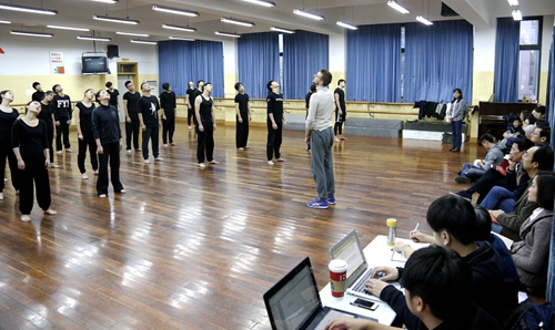 经过之前6天的密集式训练,展示课上,毕业于法国“雅克.勒考克”国际戏剧学校的年轻艺术家BENJAMINJOHN TEARE(本杰明•蒂尔)结合中国戏剧表演的现状以及我校影视学院表演系学生存在的问题制定了一套完整的训练模式,通过技能游戏、指令下的运动、身体动作和即兴主题表演四大部分有针对性的内容练习来让学生重新认知自己的身体,从而捕捉最真实的身体表现。