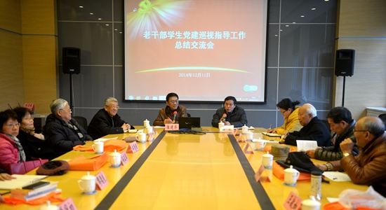 2014年,校党委根据上级党委关于加强基层服务型党组织建设的精神和要求,围绕“党组织服务党员、党员服务群众”主题,组织老干部学生党建巡视指导组开展“三看”巡视活动:一看服务要求是否明确,二看服务平台是否有效,三看服务机制是否完善。12月11日上午,校党委在会议中心5号会议室召开老干部学生党建巡视指导工作总结交流会。校党委书记陆建非出席会议并讲话。老干部学生党建巡视指导组成员,组织部、党校、老干部处相关负责人,共计20余人出席会议。