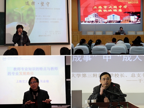 中文系78级校友,上海市大同中学校长、党总支书记,上海市督学盛雅萍;数学系84级校友,华东师范大学第三附属中学校长、总支书记,上海市特级校长干亚清;物理系78级校友,上海交通大学附属第二中学校长、书记,上海市特级校长、特级教师吴金瑜;师专85级校友,上海市虹口区第四中心小学校长、党支部书记,上海市特级校长陈珏玉,分别为中文、数学、物理、初等教育专业的250多名本科生、研究生作了精彩演讲,人文学院教师黄清、数理学院党委书记韩金铭、基础教育发展中心副主任王青松等分别主持了会议。