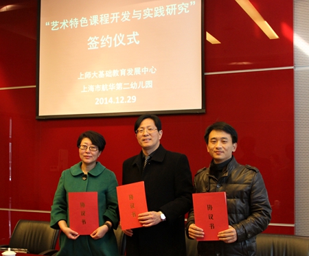 12月29日上午,由我校基教中心牵头的“开发艺术活动特色课程,促进幼儿艺术创想的实践研究”科研合作项目签约仪式在会议中心1号会议室举行。上海市航华第二幼儿园园长陈嵘,项目领衔专家、教育学院老师黄立安,基教中心负责人施斌、李希萌、王青松等十余人出席了签约仪式。